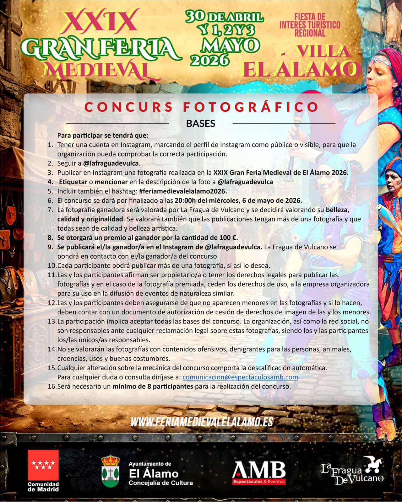 - Publicar en Instagram una fotografía realizada en la XXIX Gran Feria Medieval de El Álamo 2026.